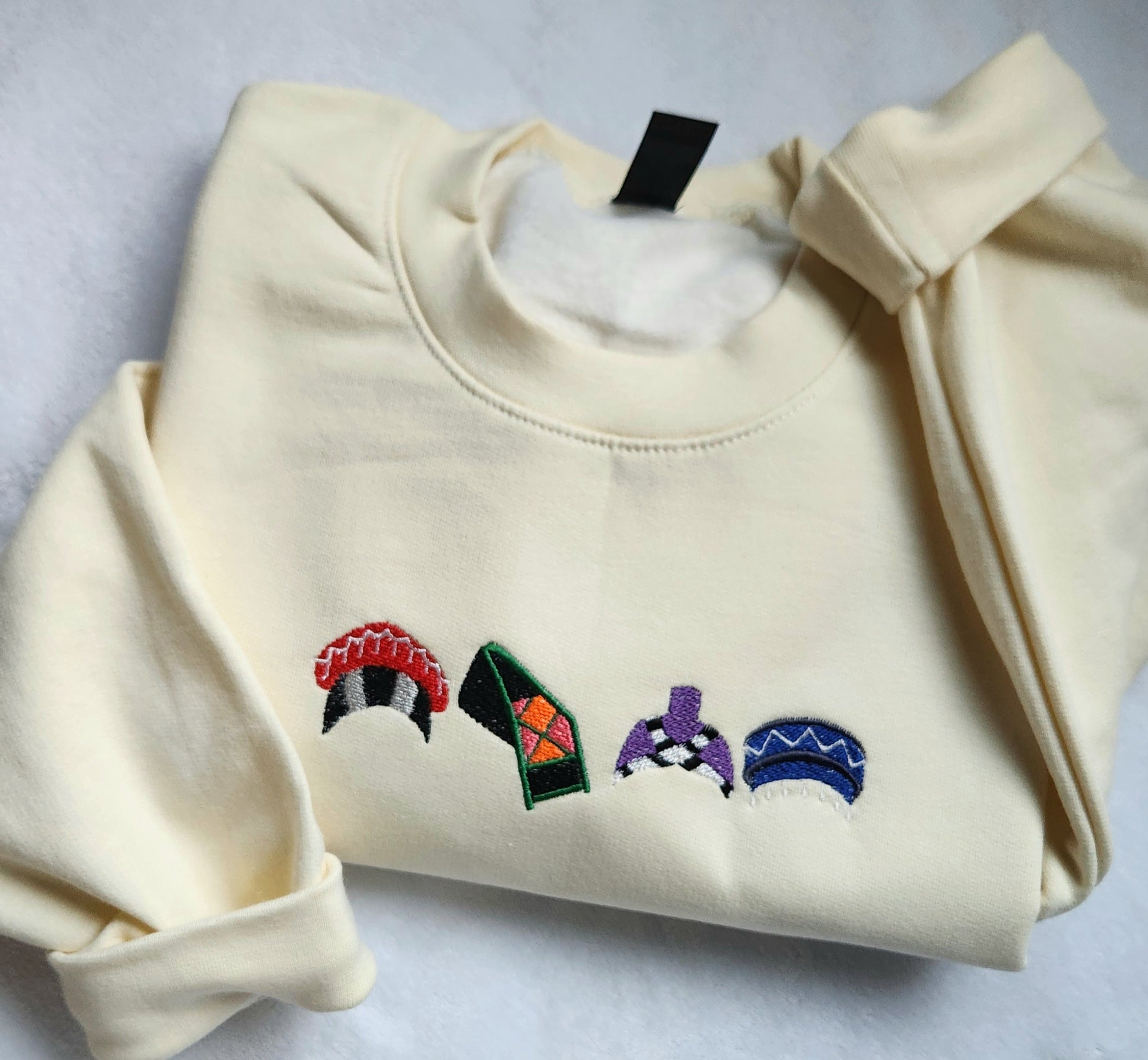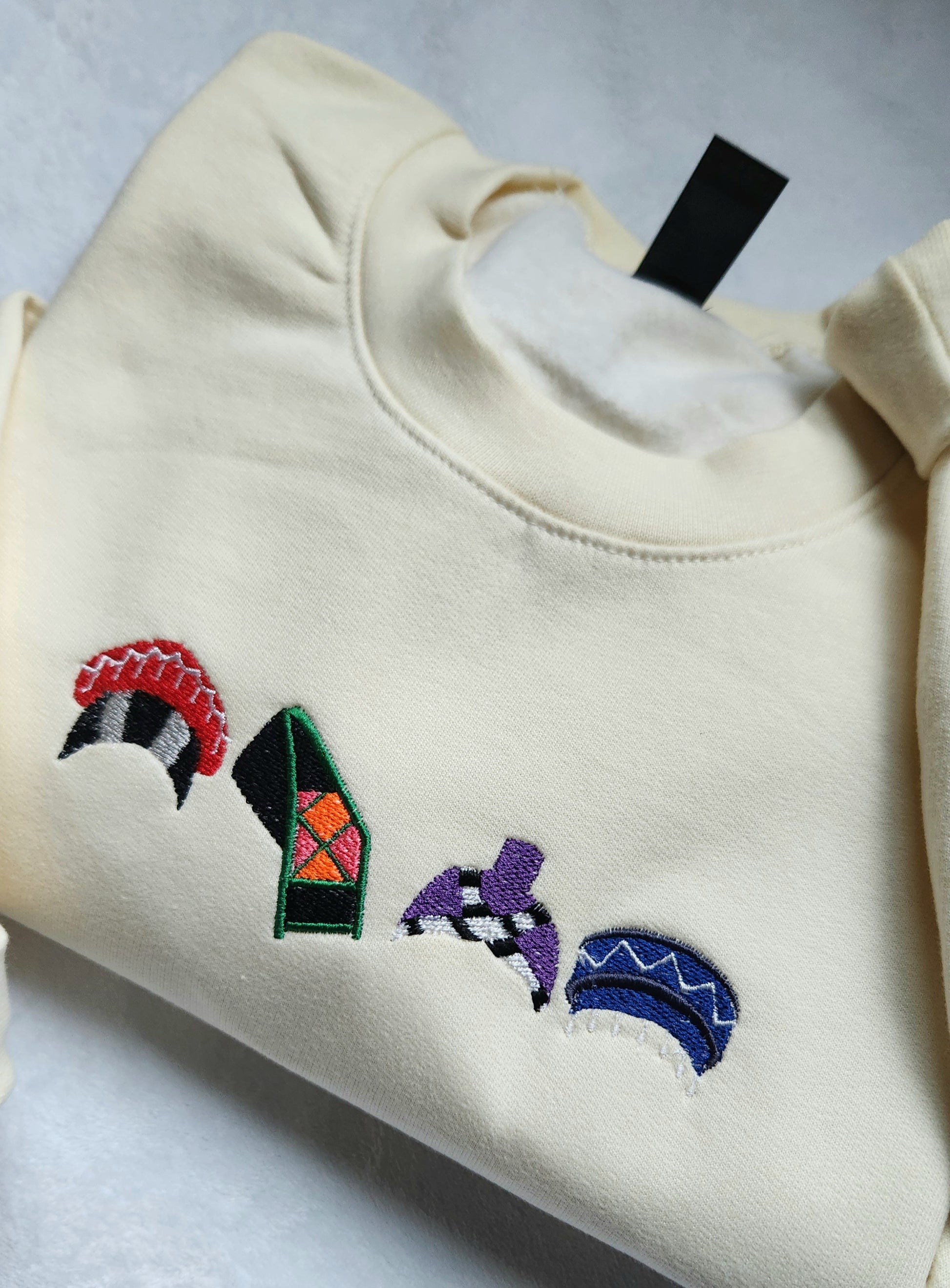 A collection of cultural hats that celebrate the Hmong Diaspora. From traditional to more modern inspired pieces, this embroidered design is stitched onto a super soft, cream colored sweater.